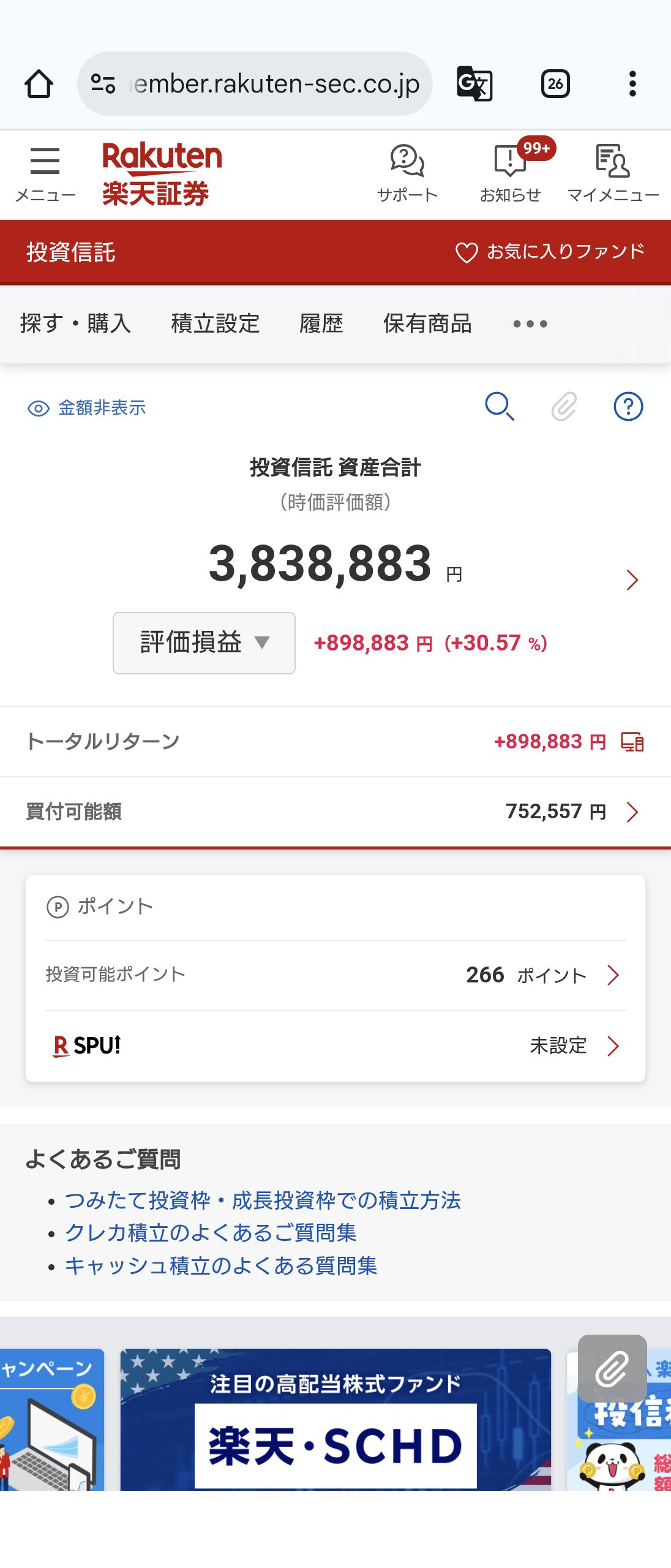 ホーム > 雑記 > 世界経済インデックスファンド生活2025年9月の結果 2025/10/01 2025/10/04 2025年10月1日現在の世界経済インデックスファンドの状況以下である。 元本が減っているのは旧NISAのロールオーバー期間が終了したので売ったことが理由。 合計68万ぶん購入している。 294万ほどに積み立てになっている。 関連記事: トライオートFX生活2019年6月の結果 くりっく株365生活終了のお知らせ 世界経済インデックスファンド生活2021年1月の結果 世界経済インデックスファンド生活2021年7月の結果 - 雑記 投資